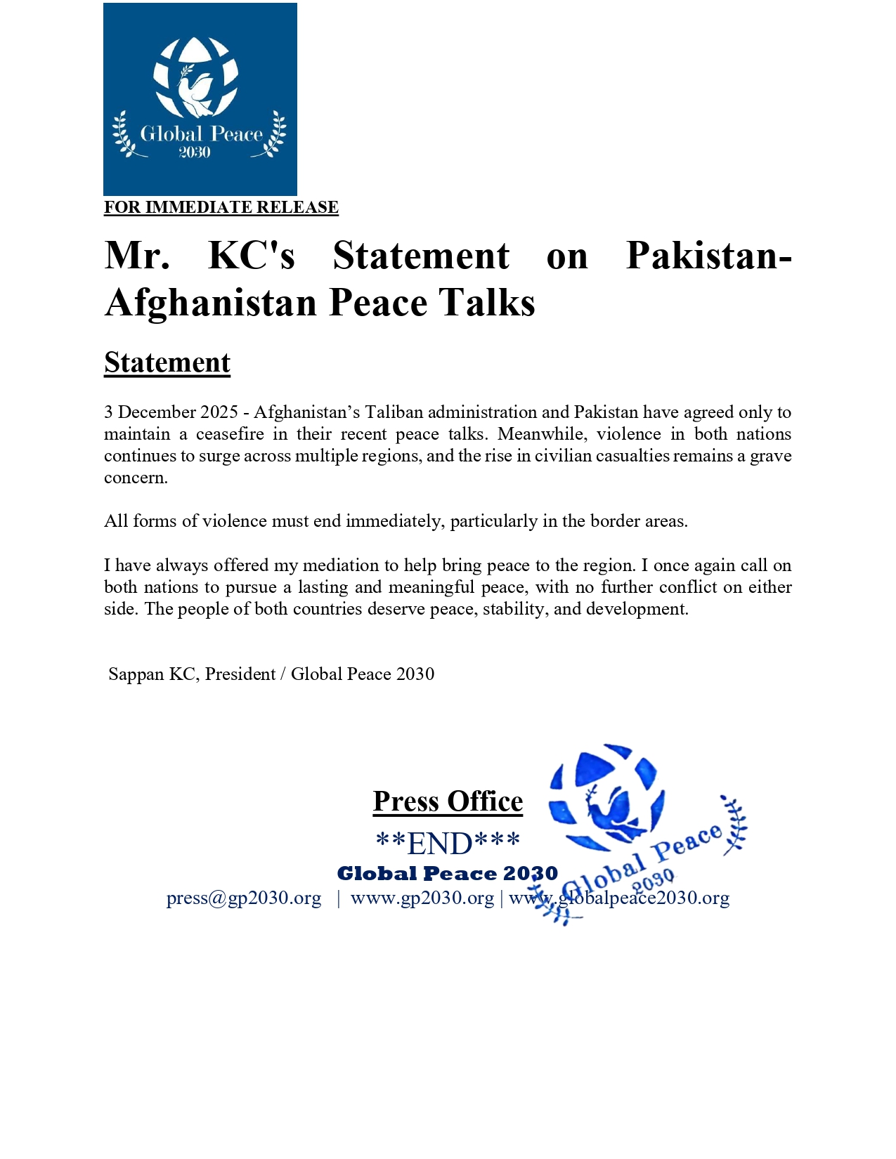 Mr. KC’s Statement on Pakistan–Afghanistan Peace Talks