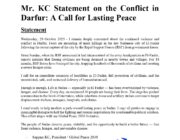 Mr. KC Statement on the Conflict in Darfur: A Call for Lasting Peace