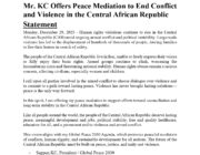 Mr. KC Offers Peace Mediation to End Conflict and Violence in the Central African Republic