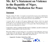 Mr. KC’s Statement on Violence in the Republic of Niger, Offering Mediation