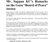 Mr. Sappan KC’s Remarks on the Gaza “Board of Peace” Statement Friday, January