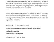 We call for Russia and Ukraine to come together for lasting peace. War is not a solution. Now more than ever, urgent dialogue, humanitarian support, and a genuine commitment to peace are needed to end the suffering and protect human dignity.