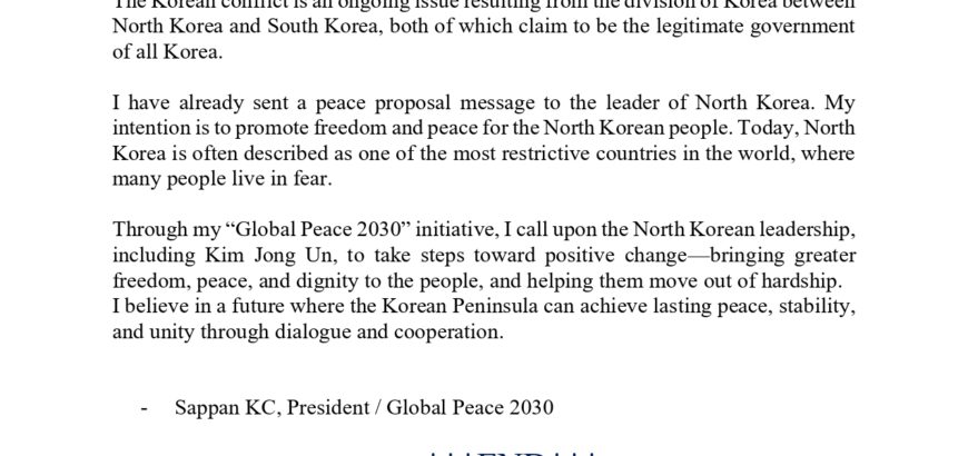 Mr. KC Calls for Peace on the Korean Peninsula Monday, April 20, 2026 – My main concern is the situation on the Korean Peninsula. The Korean conflict is an ongoing issue resulting from the division of Korea between North Korea and South Korea, both of which claim to be the