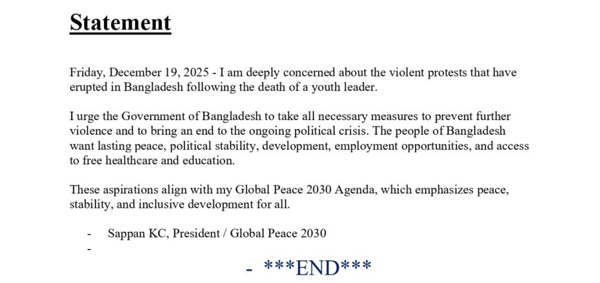 Mr. KC’s Statement on Violent Protests in Bangladesh