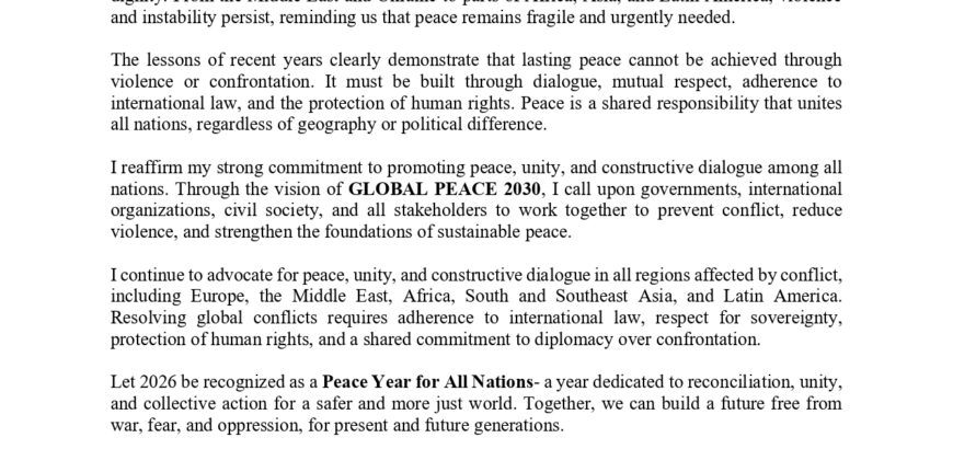 New Year Message from Mr. KC 2026 - A Peace Year for All Nations Wednesday, December 31, 2025 - As the world welcomes the New Year 2026, the international community stands at an important moment of reflection and responsibility. Across many regions, conflict, humanitarian crises, and deep divisions continue to