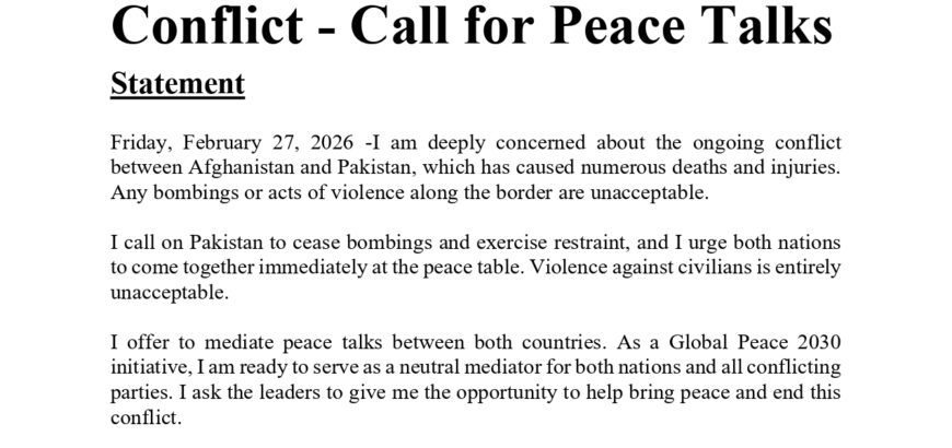 Statement by Mr. KC on the Afghanistan - Pakistan Conflict - Call for Peace Talks Statement Friday, February 27, 2026 -I am deeply concerned about the ongoing conflict between Afghanistan and Pakistan, which has caused numerous deaths and injuries. Any bombings or acts of violence along the border are unacceptable.