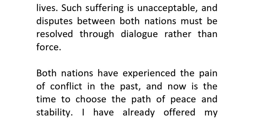 Afghanistan – Pakistan Must Resolve Conflict Through Dialogue, Not Force The ongoing tensions between Afghanistan and Pakistan continue to result in violence and the loss of civilian lives. Such suffering is unacceptable, and disputes between both nations must be resolved through dialogue rather than force. Both nations have experienced the