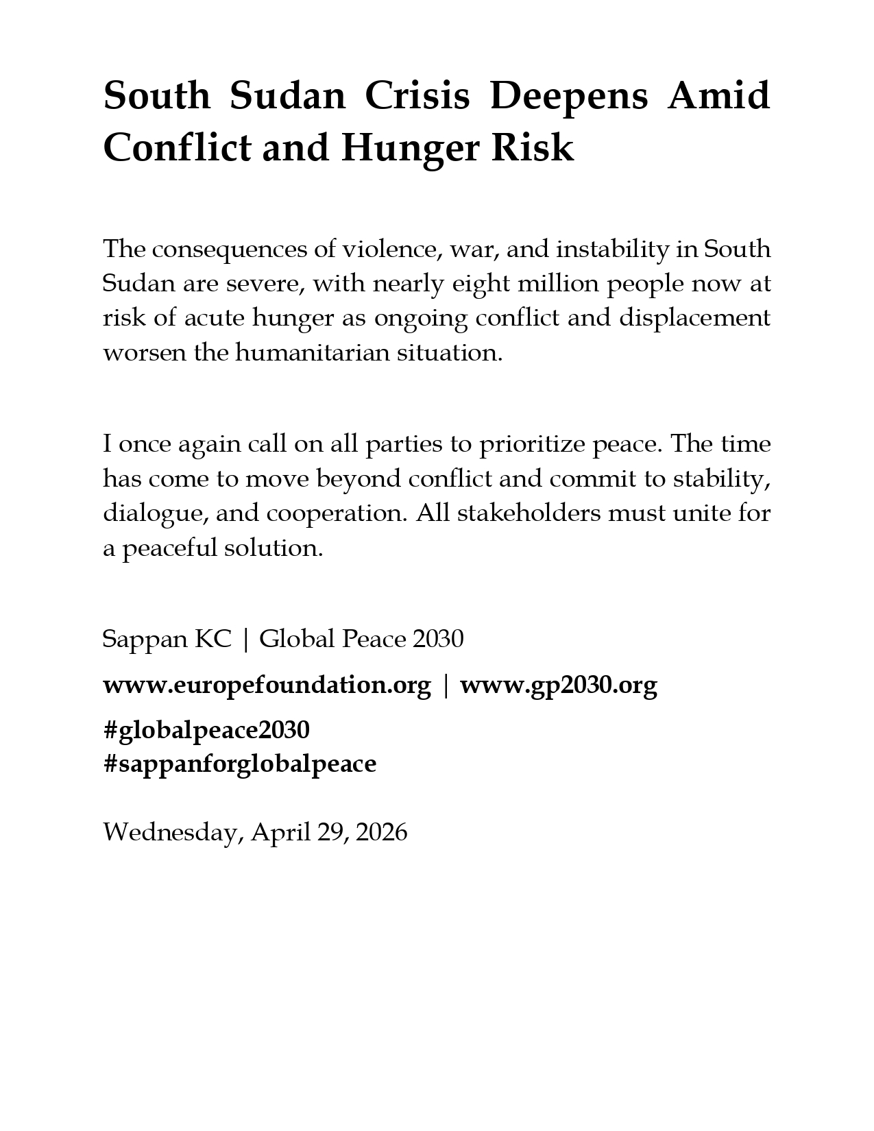 South Sudan Crisis Deepens Amid Conflict and Hunger Risk