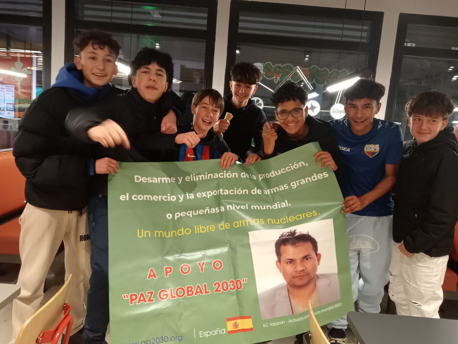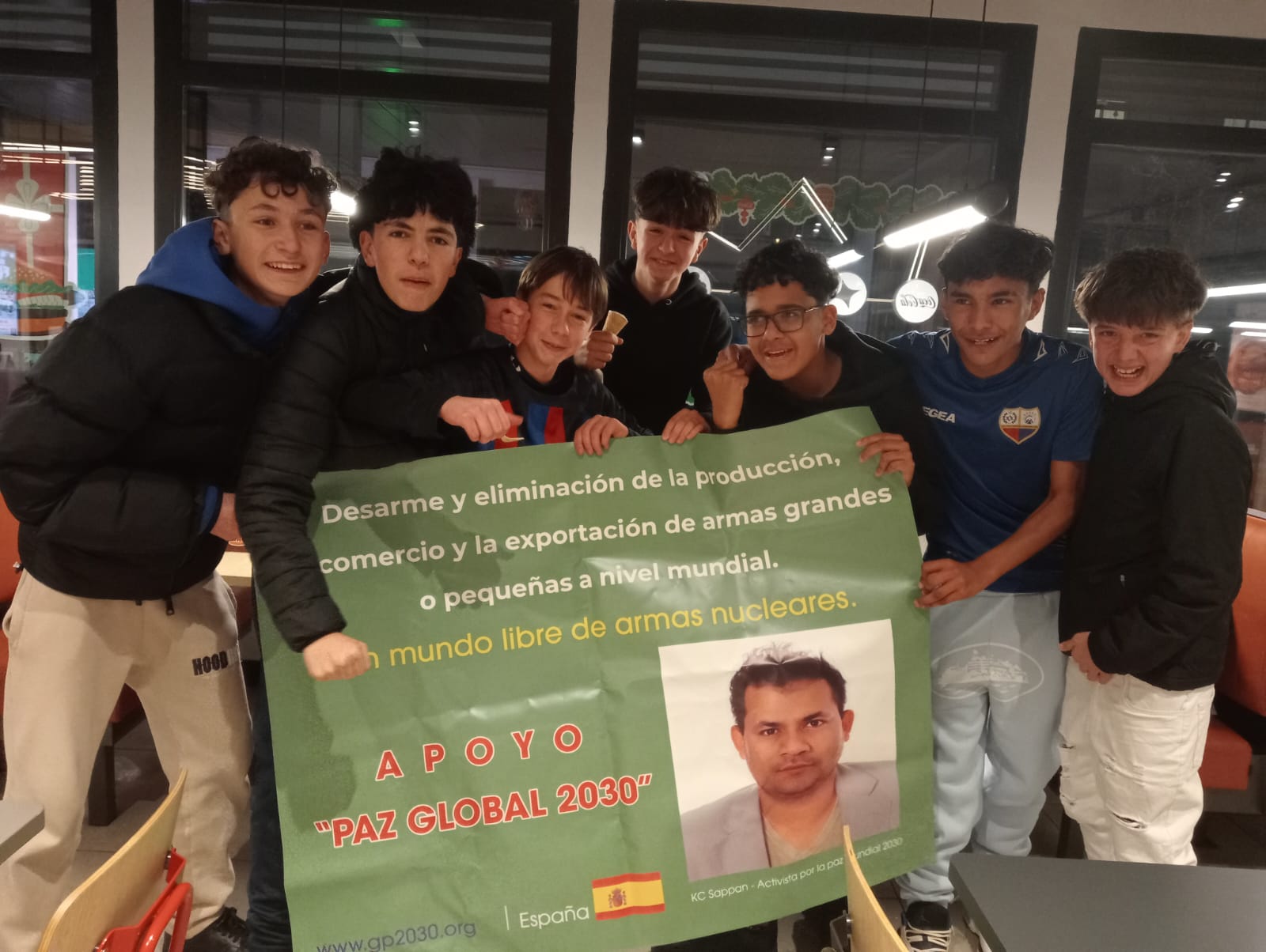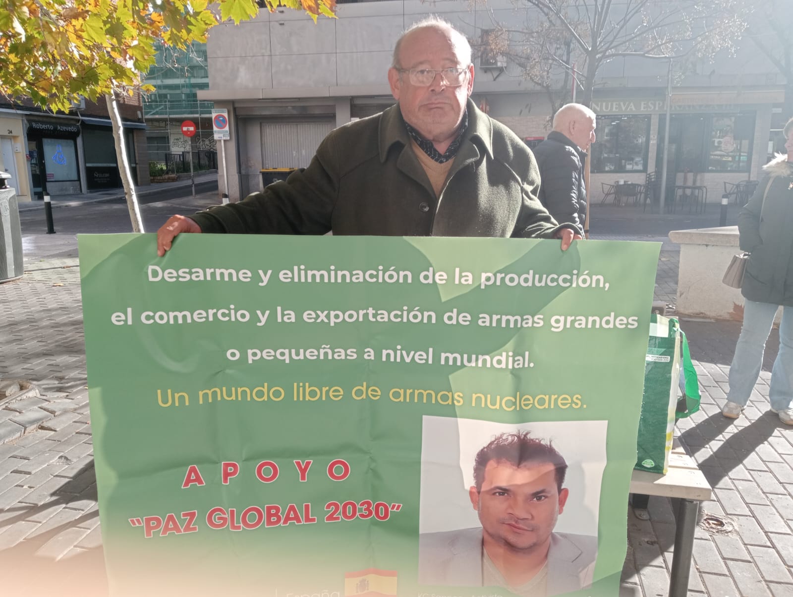 Individuals from the Kingdom of Spain demonstrate their backing for the Global Peace 2030 initiative. Participants in cities such as Madrid and Barcelona, along with other locations across Spain, are seen displaying a range of slogans, including ‘End war, Spain advocates for Global Peace 2030’ and ‘Eradicate ethnic, religious, and political violence,’ among others.